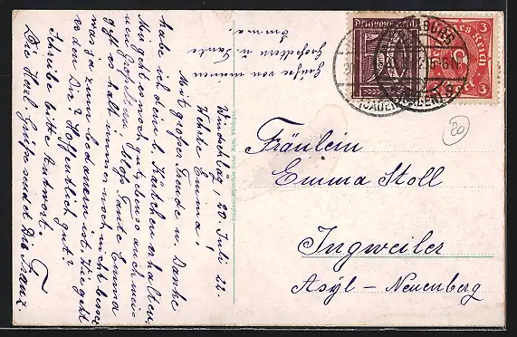 gelaufen 1922, Bugspur oben mittig, guter Zustand