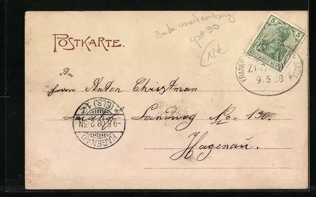 alte Ansichtskarte, gelaufen 1908, guter Zustand