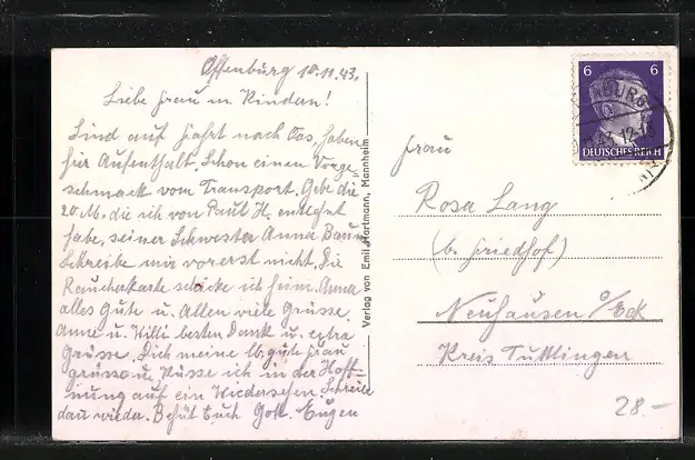 alte Ansichtskarte, gelaufen 1943, Eckknicke li., guter Zustand