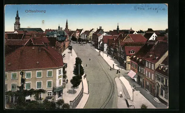 AK Offenburg, Strassenpartie aus der Vogelschau