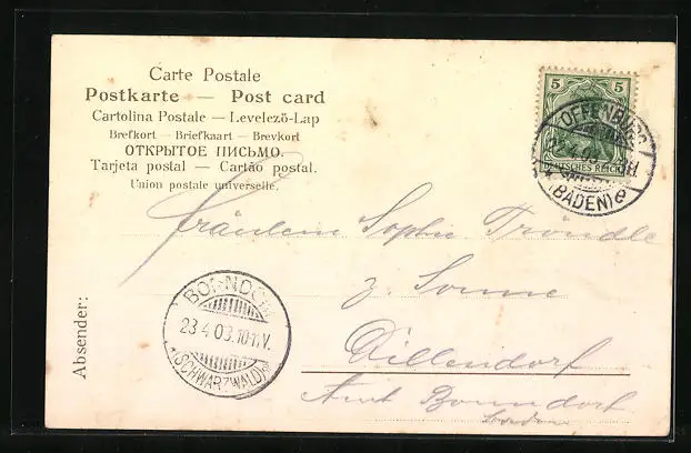 alte Ansichtskarte, gelaufen 1903, guter Zustand