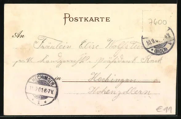 alte Ansichtskarte, gelaufen 1901, Briefmarke entfernt, guter Zustand