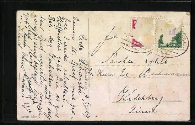 alte Ansichtskarte, gelaufen, Briefmarke entfernt, rückseitig Oberflächenschaden, Eckschaden re. unten, guter Zustand