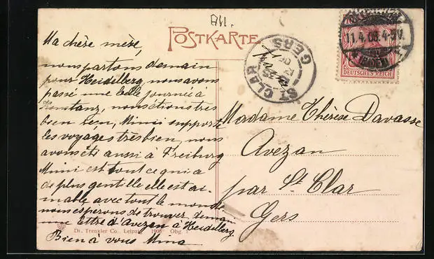 alte Ansichtskarte, gelaufen 1908, guter Zustand