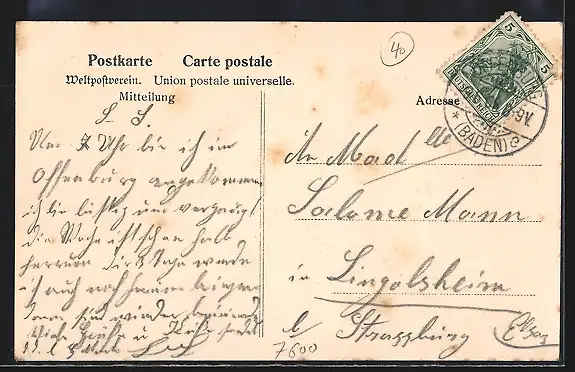 alte Ansichtskarte, gelaufen 1908, guter Zustand