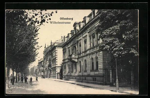 AK Offenburg, Wilhelmstrasse mit Anwohnern