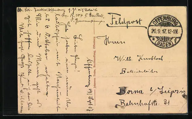 alte Ansichtskarte, gelaufen 1917, Eckknick li. unten, guter Zustand