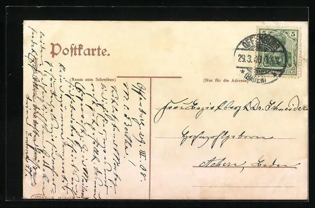 alte Ansichtskarte, gelaufen 1908, guter Zustand