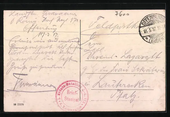 alte Ansichtskarte, gelaufen 1917 als Feldpost, guter Zustand