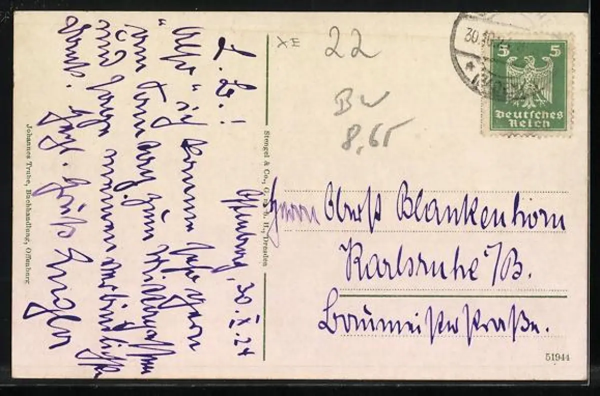 alte Ansichtskarte, gelaufen 1924, guter Zustand