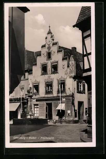 AK Offenburg i. Baden, Hirsch-Apotheke am Fischmarkt
