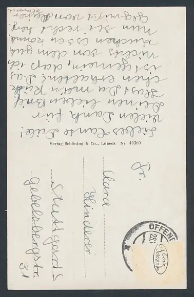 alte Ansichtskarte, gelaufen 1943, Briefmarke entfernt, Bugspur li. unten, guter Zustand