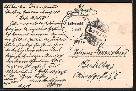 alte Ansichtskarte, gelaufen 1917, Stempelspur, guter Zustand