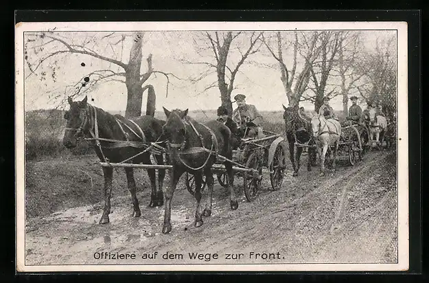 AK Offiziere auf dem Wege zur Front, Pferdekutschen