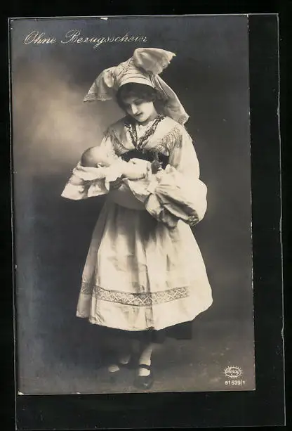AK Ohne Bezugsschein, Junge Frau mit Baby auf dem Arm, Kriegsnot