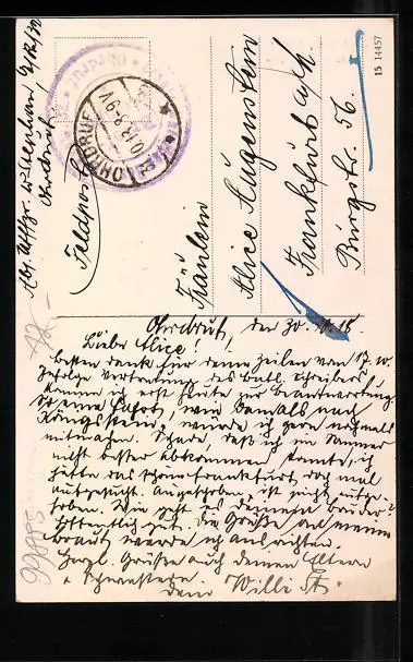 gelaufen als Feldpost 1918, guter Zustand