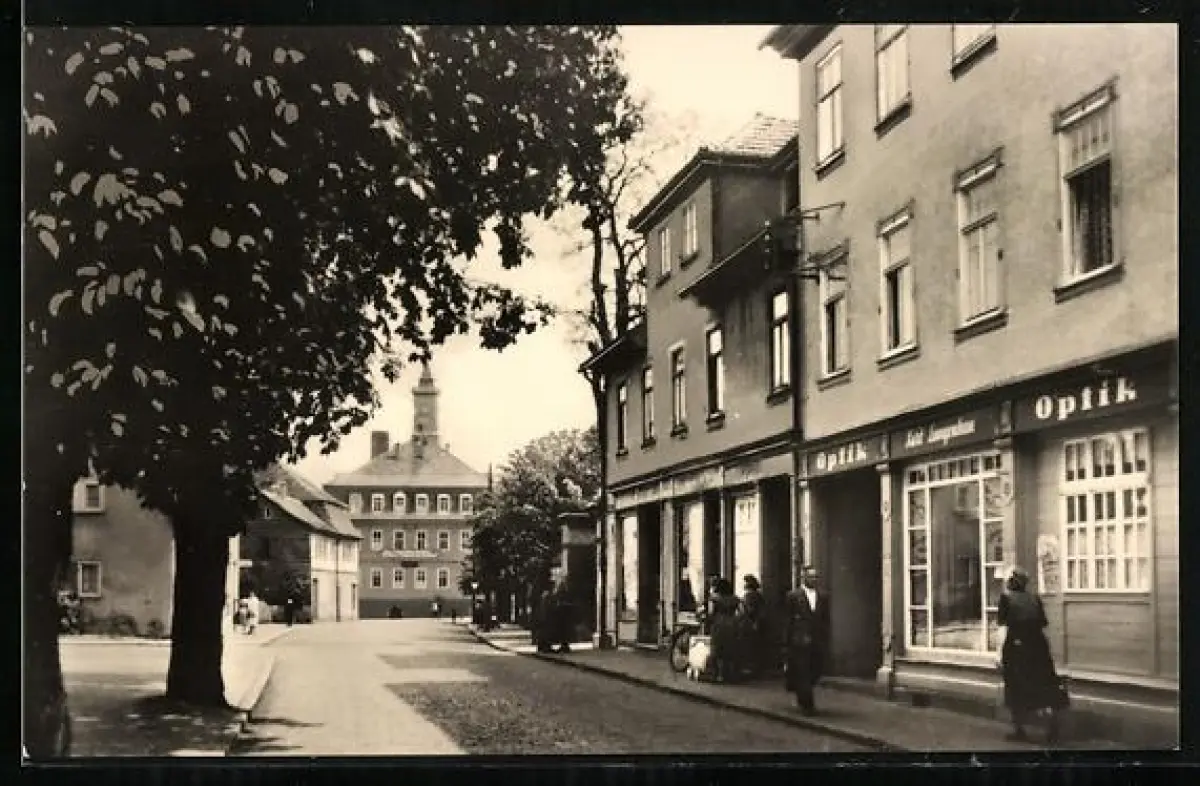 AK Ohrdruf, Strassenpartie mit Rathaus