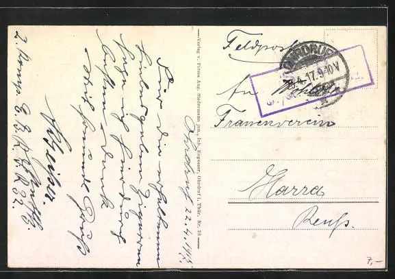 alte Ansichtskarte, gelaufen als Feldpost 917, guter Zustand