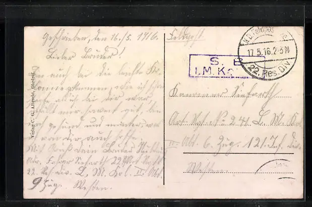 alte Ansichtskarte, gelaufen 1916 als Feldpost, guter Zustand