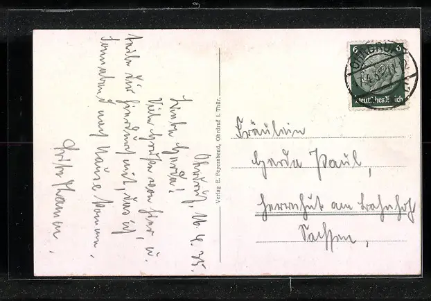 alte Ansichtskarte, gelaufen 1935, Stempelspur, guter Zustand