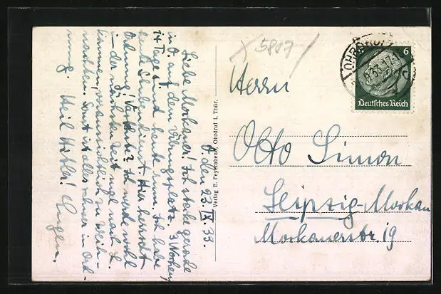 alte Ansichtskarte, gelaufen 1933, Eckknick li. oben, guter Zustand