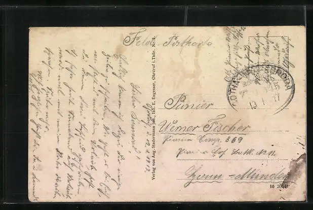 alte Ansichtskarte, gelaufen 1917 als Feldpost, Abriebspuren untere Ecken, Eckknick li. unten, guter Zustand