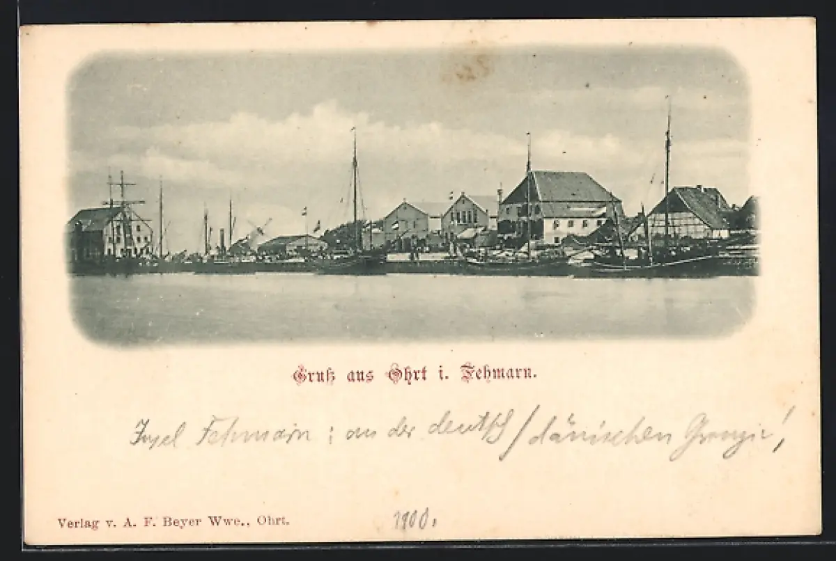 AK Ohrt i. Fehmarn, Hafenansicht mit Segelschiffen