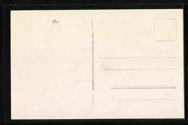 Personenbezogene Daten auf der Rückseite der Karte wurden durch blauen Textmarker unkenntlich gemacht. Die blauen Stellen sind auf die Vorderseite durchgeweicht und wirken sich negativ auf das Postkartenfoto aus