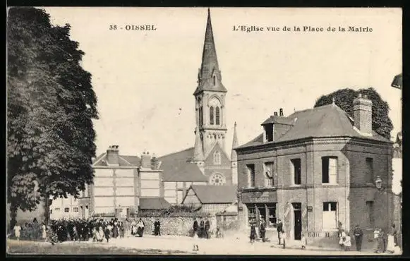 AK Oissel, L`Eglise vue de la Place de la Mairie