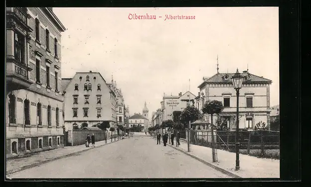 AK Olbernhau, Albertstrasse mit Hotel Gerichtsschänke