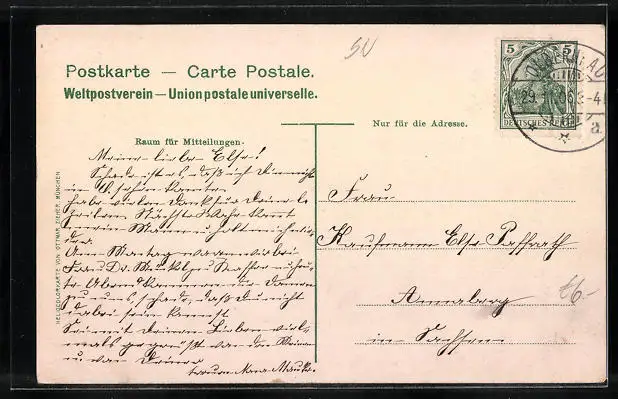 alte Ansichtskarte, gelaufen 1906, Stempelspur, guter Zustand