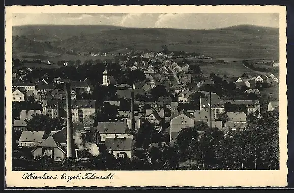AK Olbernhau, Teilansicht mit den Fabrikschornsteinen