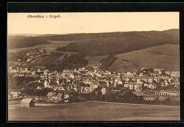 AK Olbernhau i. Erzgeb., Teilansicht vom Ort mit Häusern