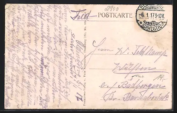 alte Ansichtskarte, gelaufen 1917, Eckknick rechts oben, guter Zustand