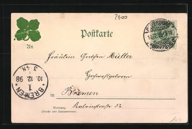 alte Ansichtskarte, gelaufen 1898, guter Zustand