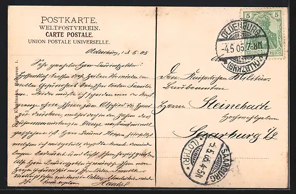 alte Ansichtskarte, gelaufen 1905, Eckknick oben li., guter Zustand
