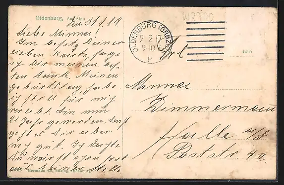 alte Ansichtskarte, gelaufen 1919, Briefmarke entfernt, rückseitig Oberflächenschaden, guter Zustand