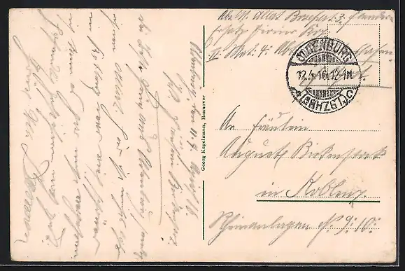 alte Ansichtskarte, gelaufen 1916, Eckknicke li. unten, guter Zustand