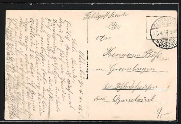 alte Ansichtskarte, gelaufen 1916, Abriebspur oberer Rand links, guter Zustand