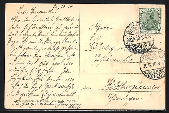 alte Ansichtskarte, gelaufen 1910, guter Zustand
