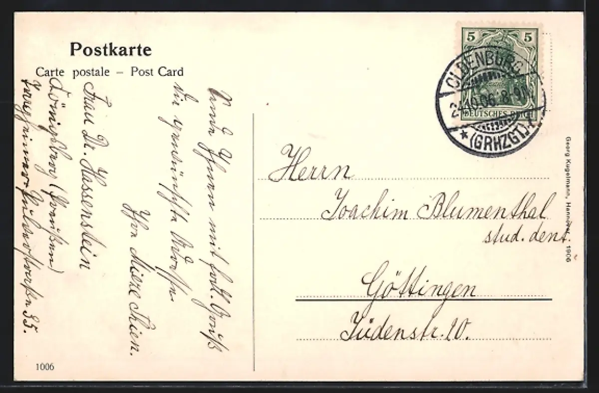 alte Ansichtskarte, gelaufen 1906, guter Zustand