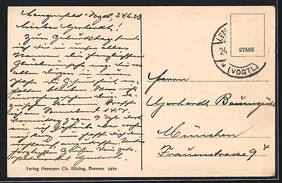 alte Ansichtskarte, gelaufen 1923, Ecken bestoßen, Briefmarke entfernt, guter Zustand