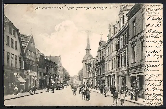 AK Oldenburg / O., Belebte Partie in der Langestrasse