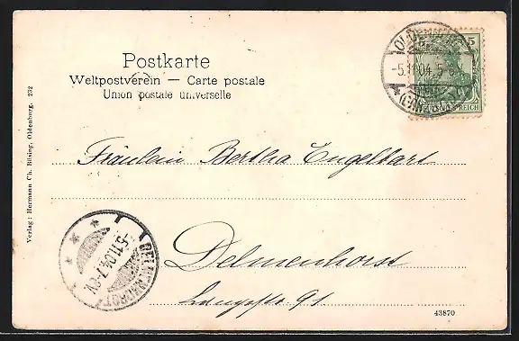 alte Ansichtskarte, gelaufen 1904, Eckknick re. unten, guter Zustand