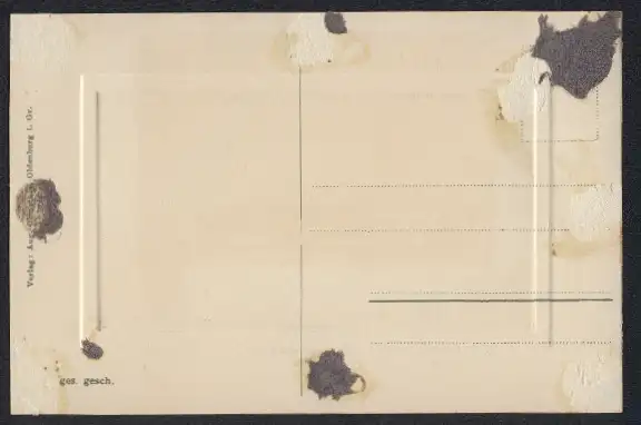 alte Ansichtskarte, ungelaufen, rückseitig Oberflächenschaden, rückseitig Klebe- und Papierreste, Eckknick und Einriss re. unten