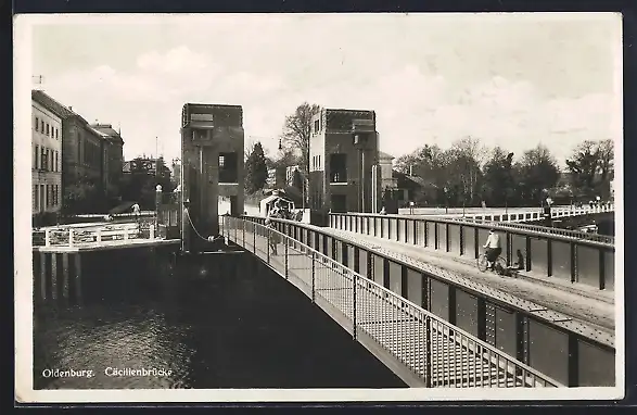 AK Oldenburg / O., Cäcilienbrücke mit Blick in den Ort