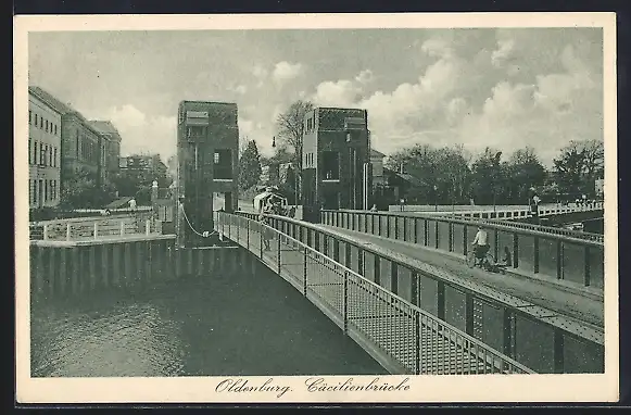 AK Oldenburg / O., Cäcilienbrücke mit Fluss