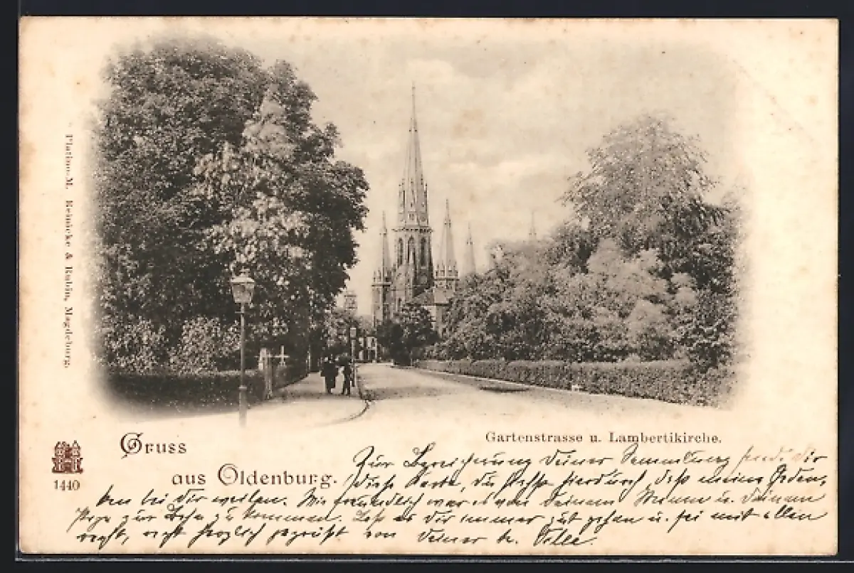 AK Oldenburg / O., Gartenstrasse mit Lambertikirche