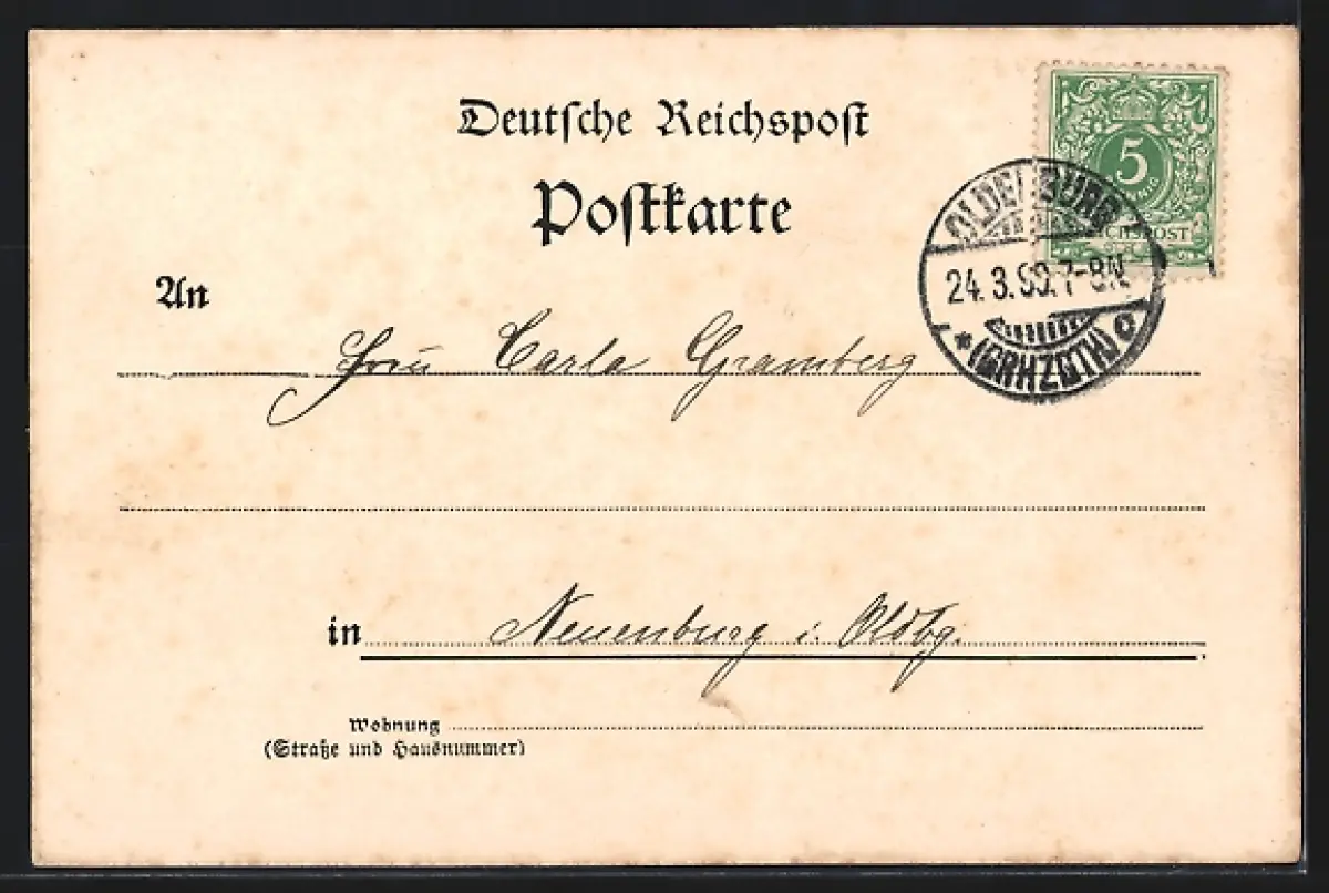 alte Ansichtskarte, gelaufen 1899, guter Zustand