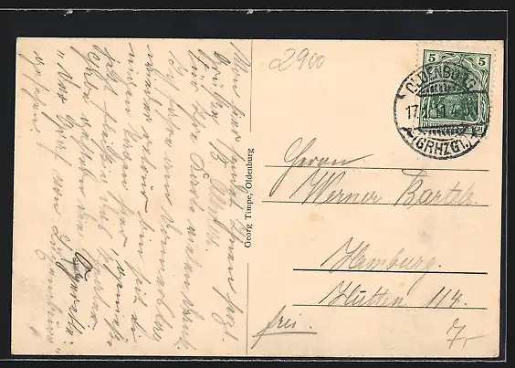 alte Ansichtskarte, gelaufen 1911, Fleck links oben, guter Zustand